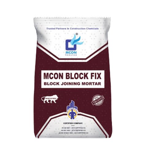 - mcon block fix is a polymer modified pre-mixed, easy to apply, high quality adhesive mortar, comprising of cement, graded sand and special additives.