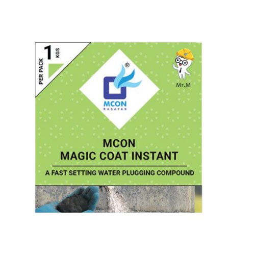 - The mixed grout is colored grey. MCON Magic Coat Instant is used for the plugging and instant stoppage of water leakages so that treatment or application can be done on them.